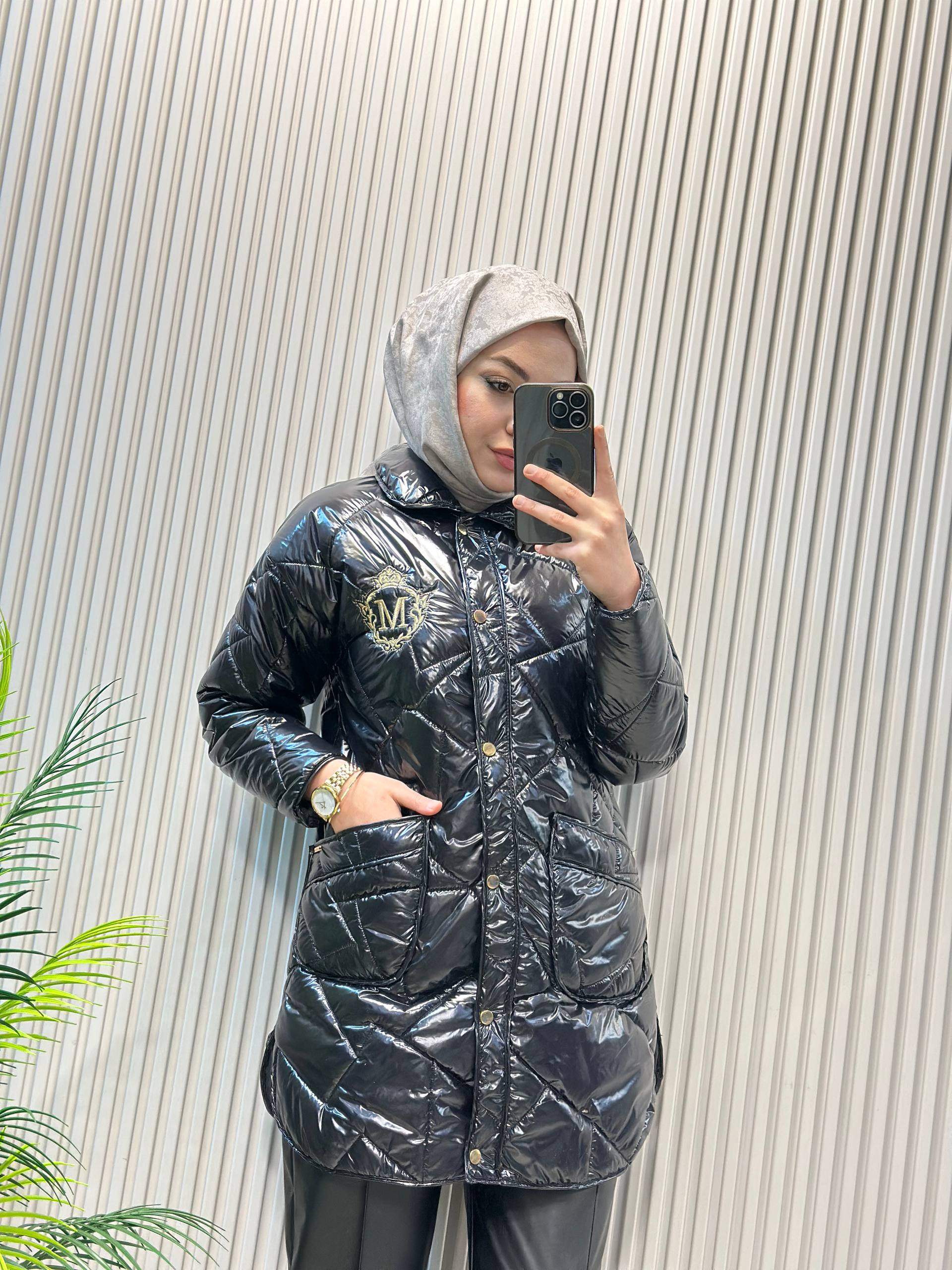 Moodbasic Nakış Detaylı Parlak Kapitone Mont